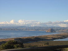 Morro Rock (Salinan: Le'samo, Northern Chumash: Lisamu') is a volcanic plug in Morro Bay, California, on the Pacific Coast at the entrance to Morro Bay harbor. A causeway connects it with the shore, making it a tied island. The rock is protected as the Morro Rock State Preserve.[4]