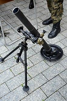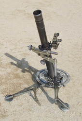 A mortar is usually a simple, lightweight, man-portable, muzzle-loaded weapon, consisting of a smooth-bore (although some models use a rifled barrel) metal tube fixed to a base plate (to spread out the recoil) with a lightweight bipod mount and a sight. They launch explosive shells (technically called bombs)[2] in high-arcing ballistic trajectories. Mortars are typically used as indirect fire weapons for close fire support with a variety of ammunition.