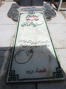 Avini was killed by shrapnel from a landmine explosion in Fakkeh, in northwest Khuzestan Province, on April 9, 1993, while producing a documentary.[14] He was dubbed a shahid, or "martyr," after his death.[6] Ayatollah Ali Khamenei, the Supreme Leader of Iran, described him as "the master of martyred literati" (Persian: سید شهیدان اهل قلم) on the 20th day of Farvardin, which was declared the day of "Islamic Revolution art" on the Iranian calendar.[15]