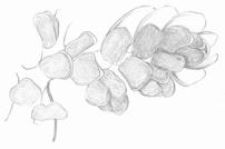 Like all ferns, sexual reproduction leads to spore formation, but unilke other members of this group Azolla produces two kinds. During the summer months, numerous spherical structures called sporocarps form on the undersides of the branches. The male sporocarp is greenish or reddish and looks like the egg mass of an insect or spider. It is two millimeters in diameter, and bears numerous male sporangia. Male spores (microspores) are extremely small and are produced inside each microsporangium. Microspores tend to adhere in clumps called massulae.[8]