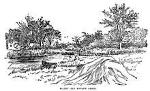A year after Shaw's death the Town was still without a mill.[20] A committee was formed and "an audacious plan" was devised to "divert some of the plentiful water from the placid Charles into the steep but scarce east Brook.[9][20][6][37] The 4,000 foot ditch was ordered to be dug at public expense by the Town on March 25, 1639,[5][20][12][9][37][nb 3] and a tax was levied on settlers to pay for it.[9] The settlers may have been influenced by the draining of the Fens in The Wash, an area in England near many of their hometowns.[37]
