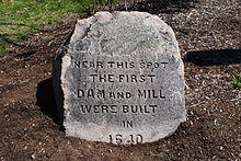 The town was so confident in this course of action that the work began before they found a new miller to replace Shaw.[9] There is no record of who dug it or how long it took,[20][6] although Whiting family history claims it was done by Nathaniel Whiting.[42] The labor pool would be confined to the 30 men who headed households in the town at the time, plus various servants and other male relatives.[37] While it is unknown when exactly it was completed, there was water running through it by July 14, 1641, and has been known as Mother Brook since at least 1678.[42][9][6][39][37] There is no record of any celebration that may have taken place upon its completion.[37]