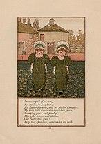 In the 1880s the artist Kate Greenaway illustrated popular books of English nursery rhymes showing children in smock dresses. These came to be a popular style of children's dress which were given the name 'Mother Hubbard' by fashion writers at the time after the nursery rhyme character in the books.[1]