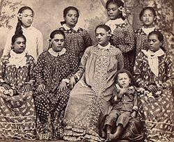 Contemporary with this in Victorian times missionary movements attempted to spread what they saw as the benefits of western religion and morals to native peoples under the rule of the imperial western countries. The Mother Hubbard garments were insisted upon by missionaries who were often horrified to find a flock of near-naked people in their churches.[1] They were distributed widely in Africa, South Asia, and the Pacific. They have influenced modern dress in all these areas, but particularly in the Pacific islands where they persist today.