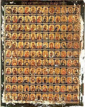 "Mother of God" is the literal translation of a distinct title in Greek, Μήτηρ τοῦ Θεοῦ (translit. Mētēr tou Theou), a term which has an established usage of its own in traditional Orthodox and Catholic theological writing, hymnography, and iconography.[9] In an abbreviated form, ΜΡ ΘΥ (М҃Р Ѳ҃Ѵ), it often is found on Eastern icons, where it is used to identify Mary. The Russian term is Матерь Божия (also Богома́терь).[10]