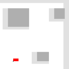 Given a bundle of rays around the current position attributed with their length hitting a wall, the robot moves into the direction of the longest ray unless a door is identified. Such an algorithm was used for modeling emergency egress from buildings.