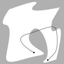 An illustration is provided by the three figures on the right where a hook with two degrees of freedom has to move from the left to the right, avoiding two horizontal small segments.