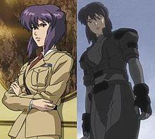 Major Motoko Kusanagi (Japanese: 草薙 素子, Hepburn: Kusanagi Motoko), or just "Major", is the main protagonist in Masamune Shirow's Ghost in the Shell manga and anime series. She is a synthetic "full-body prosthesis" augmented-cybernetic human employed as the field commander of Public Security Section 9, a fictional anti-cybercrime law-enforcement division of the Japanese National Public Safety Commission. Being strong-willed, physically powerful, and highly intelligent, she is well known for her skills in deduction, hacking and military tactics.