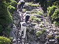 Mount Ishizuchi is an important object of worship in this region and one of the major centers of Shugendō, a sect of mixture of Shintoism and Buddhism. At the top of the mountain there is a small shrine called the Ishizuchi Shrine. This mountain is also known as one of Seven Holy Mountains (七霊山, nana reizan). There are several sets of heavy iron chains (鎖, kusari) leading up to the summit and this is the route many pilgrims opt to take, the longest set being 68m. However, it is possible to hike all the way to the peak along a trail which includes stairs and ramps with handrails.