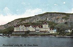 In 1911, the Maine Central Railroad purchased the resort and engaged the Hiram Ricker Hotel Company to operate it. Then the largest inland waterfront hotel in America, it had accommodations for over 500 guests. In 1933, the railroad eliminated its Kineo branch, and in 1938 sold the hotel. It burned during demolition and today the old employee house still stands next to hole # 9 of the golf course.[8]