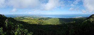Mount Tapochau is the highest point on the island of Saipan in the Northern Mariana Islands. It is located in the center of the island, north of San Vicente village and northwest of Magicienne Bay, and rises to a height of 474 m (1555 ft). The mountain offers a 360 degree view of the island. Mount Tapochau was vital in World War II as a result of this.