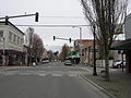The city again grew in the 1910s when it became the southern terminus for the Bellingham & Skagit Railway's interurban railroad line, which would carry passengers as well as freight between Bellingham and Mount Vernon as well as Burlington and Sedro-Woolley. The line opened on August 31, 1912, with passenger trips to Bellingham every two hours during the day and freight operating at night. Mount Vernon business owners soon began pressuring the railway company, since renamed the Pacific Northwest Traction Company, to extend the rails south to connect with the interurban line in Everett. Plagued by a weakening economy, the onset of America's entrance into World War I in 1917, and numerous infrastructure failures that led to line closures for months at a time, extension of the interurban was put off indefinitely. The completion of the Pacific Highway between Seattle and Bellingham in 1920 posed a great threat to the still incomplete interurban line. After a series of accidents and bridge wash outs, passenger service on the money-losing line was permanently suspended in June 1930.[10] In 1969, Interstate 5 was built through downtown, severing it from most of the residential district and opening the farm lands north of the city to urban development, where many of Mount Vernon's downtown businesses moved.