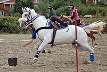 Mounted games is a branch of equestrian sport in which very fast games are played by people of all ages on ponies up to a height of 15 hands (60 inches, 152 cm).