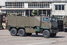 The DURO IIIP ( also named DURO GMTF) is a version only available in 6x6 form. It is heavily armoured and has a remote controlled machine-gun. It is used by the Danish Army as an ambulance, and by the Swiss Army in the roles of APC, NBC-Reconnaissance and ambulance in international peace support missions of Swissint.[6] The DURO IIIP is also used by Germany.[7]
