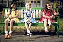 The different colors used in the film have symbolic meanings. Each of the three main storylines has its own unique hue that highlights their originality and unlikeness to each other. Color differentiation can be traced as far back as Nemo's childhood, where three girls sit on a bench. They are his possible future wives: Jeanne, Elise, and Anna; one in yellow, the other in blue, and the third in a red dress. In his life with Elise, Nemo experiences the consequences of depression and despair, themes associated with the color blue.[32] Choosing Jeanne, Nemo seeks material well-being and independence: yellow – the color of life and wealth – emphasizes this.[33] The true love and passionate relationship between Nemo and Anna is symbolized by the red color of Anna's dress.[34] It is noteworthy that the unborn Nemo is shown living in a white world. White contains all colors of the visible spectrum; this supports the allegorical message of the film that all things are possible until a choice is made.[35] By the end of his life, Nemo is a decrepit old man and lives in a white surrounding (room, clothes, doctor). This way we can see that the fate of the protagonist leads him back to the origins from where he started, the point at which everything is possible.[31]