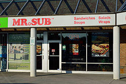 Mr. Sub (stylized MR.SUB), originally called Mr. Submarine before the 1990s, is a Canadian chain of over 200 submarine sandwich shops.[3] The first store was opened in 1968 in Toronto's Yorkville neighbourhood, which was then known for its "hippie" culture.[3]