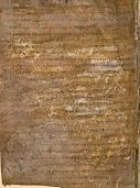 Lines 63–72 are directly critical of the judiciary, specifically the taking of bribes. The wording here closely matches the Capitulare missorum generale (802), Charlemagne's instructions to his itinerant officials.[37] Corrupt judges were frequently censured, and there was much pressure for judicial reform. The Muspilli emerges from Finger's study as strongly partisan—critical of popular law as practised in county courts (Grafsgerichte), and supportive of Carolingian legal reforms, to the extent of using concepts and terms typical of Frankish royal court procedures in its depiction of the Last Judgment. Finger concluded that the author was probably a cleric in Louis the German's entourage.