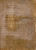 Though in Carolingian minuscules, the handwriting is not that of a trained scribe. The language is essentially Bavarian dialect of the middle or late 9th century. The poem's beginning and ending are missing: they were probably written on the manuscript's outer leaves, which have since been lost. Legibility has always been a problem with this text, and some early editors used reagents which have left permanent stains.[2] There are many conjectural readings, some of them crucial to modern interpretation of the work.[3]