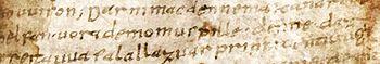 The text is extant in a single ninth-century manuscript, Clm 14098 of the Bavarian State Library, Munich. The bulk of the manuscript contains a Latin theological text presented between 821 and 827 by Adalram, bishop of Salzburg, to the young Louis the German (ca. 810–876). Into this orderly written manuscript, the text of the Muspilli was untidily entered, with numerous scribal errors, using blank pages, lower margins and even the dedication page.[1]