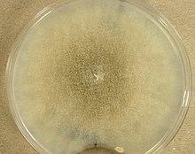 Mucor racemosus is a rapidly growing, weedy mould belonging to the phylum, Zygomycota. It is one of the earliest fungi to be grown in pure culture and was first isolated in 1886. It has a worldwide distribution and colonizes many habitats such as vegetational products, soil and houses.[1][2] The fungus is mostly known for its ability to exhibit both filamentous and yeast-like morphologies, often referred to as dimorphism.[1] Stark differences are seen in both forms and conditions of the environment heavily affect the phases of the M. racemosus.[1] Like many fungi, it also reproduces both sexually and asexually.[1] The dimorphic capacity of this species has been proposed as an important factor in its pathogenicity and has enhanced the industrial importance. This species is considered an opportunistic pathogen, generally limited to immunocompromised individuals.[3] It also been associated with allergy and inflammations of facial sinuses.[3] Its association with allergy has made it a common fungus used in allergen medical testing.[4][5] Industrial use of the fungus is in the production of enzymes and the manufacture of certain dairy foods.[6][7][8]