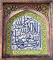 The shahada in Arabic calligraphy at the Wazir Khan Mosque, Lahore, Pakistan.