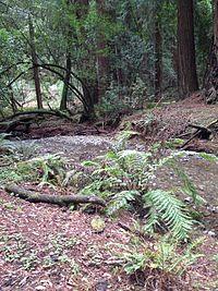Redwood Creek provides a critical spawning and rearing habitat for coho or silver salmon (Oncorhynchus kisutch) and steelhead (Oncorhynchus mykiss). Steelhead are listed as threatened species (2011) in the Central California Coast distinct population segment. Coho salmon are listed as endangered in their evolutionary significant unit (2011). The creek is near the southernmost limit of coho habitat and the fish have never been stocked, so they have a distinctive DNA. The Redwood Creek salmon are Central Coast coho salmon which have been listed as federally threatened species since October 2006 and as federally endangered species in June 2005. Coho migrate from the ocean back to freshwater for a single chance at reproduction, generally after two years in the ocean. The spawning migrations begin after heavy late fall or winter rains breach the sandbar at Muir Beach allowing the fish to move upstream (usually in December and January).[16] No salmon were seen in the 2007–2008 winter run, nor the 2008–2009 winter run. Evidence points to exhaustion of smolt oversummering in the creek due to a loss of large woody debris and deep pools where young salmon can rest. Starting in 2009, the National Park Service began restoring Muir Beach to create a functional, self-sustaining ecosystem and improve visitor access.[17] The intervention was almost too late, since the coho only has a three-year life span. But, as of January 2010, and for the first time in three years, an estimated 45 coho swam up Redwood Creek to spawn, creating 23 redds or clusters of eggs.[18] In 2011, 11 live adult coho and 1 coho carcass was observed, along with three redds, a modest increase over the 2007-2008 spawning season.[19] Statewide the coho population is 1% of its levels in the 1940s and the fish have vanished from 90% of the streams they formerly visited.[20][21] The Watershed Alliance of Marin reported that no salmon returned to spawn in 2014, prompting concerns that the fish may now be extirpated from the creek.[22]