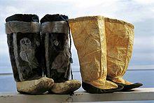 Mukluks[1] or kamik (Inuktitut: ᑲᒥᒃ [kaˈmik][2]) (singular: ᑲᒪᒃ kamak, plural: ᑲᒦᑦ kamiit) are a soft boot, traditionally made of reindeer (caribou) skin or sealskin, and worn by Arctic aboriginal people, including the Inuit, Iñupiat, and Yupik.[3]