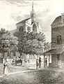 The street was listed on maps of the area since at least 1755. The "Bend" in Mulberry, where the street changes direction from southeast to northwest to a northerly direction, was made to avoid the wetlands surrounding the Collect Pond. During the period of the American Revolution, Mulberry Street was usually referred to as "Slaughter-house Street", named for the slaughterhouse of Nicholas Bayard on what is now the southwest corner of Mulberry and Bayard Streets, which was located there until the summer of 1784, when it was ordered to be removed to Corlaer's Hook.[1]