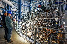 The multi-unit spectroscopic explorer (MUSE) is an integral field spectrograph installed at the Very Large Telescope (VLT) of the European Southern Observatory (ESO).[1][2][3] It operates in the visible wavelength range,[1] and combines a wide field of view with a fine spatial sampling and a large simultaneous spectral range. It is designed to take advantage of the improved spatial resolution provided by adaptive optics.[1] MUSE had first light on the VLT on 31 January 2014.[4]