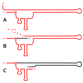 - ^ Furuichi T, Inouye S, Inouye M (January 1987). "Biosynthesis and structure of stable branched RNA covalently linked to the 5' end of multicopy single-stranded DNA of Stigmatella aurantiaca". Cell. 48 (1): 55–62. doi:10.1016/0092-8674(87)90355-2. PMID 2431795. S2CID 32376617.