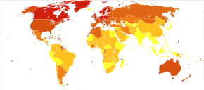 MS is more common in people who live farther from the equator, although exceptions exist.[5][31] These exceptions include ethnic groups that are at low risk far from the equator such as the Samis, Amerindians, Canadian Hutterites, New Zealand Māori,[32] and Canada's Inuit,[2] as well as groups that have a relatively high risk close to the equator such as Sardinians,[2] inland Sicilians,[33] Palestinians, and Parsi.[32] The cause of this geographical pattern is not clear.[2] While the north–south gradient of incidence is decreasing,[31] as of 2010 it is still present.[2]