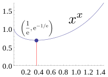 Every real or complex number excluding zero has a reciprocal, and reciprocals of certain irrational numbers can have important special properties. Examples include the reciprocal of e (≈ 0.367879) and the golden ratio's reciprocal (≈ 0.618034). The first reciprocal is special because no other positive number can produce a lower number when put to the power of itself; is the global minimum of . The second number is the only positive number that is equal to its reciprocal plus one:. Its additive inverse is the only negative number that is equal to its reciprocal minus one:.