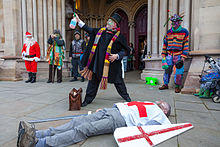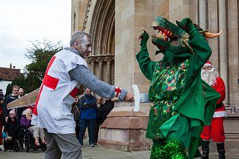 St. George slays the Dragon, in a 2015 Boxing Day production, by the St Albans Mummers