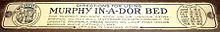 The bed is named after William Lawrence Murphy (1876–1957), an Irish immigrant in New York who wanted to find a creative method of making space in his small apartment. He applied for his first patents around 1900. According to legend, he was wooing an opera singer, but living in a one-room apartment in San Francisco, and the moral code of the time frowned upon a woman entering a man's bedroom. Murphy's invention converted his bedroom into a parlor, enabling him to entertain.[1] Earlier foldup beds had existed, and were even available through the Sears, Roebuck & Co. catalog,[2] but Murphy introduced pivot and counterbalanced designs for which he received a series of patents, including one for a "Disappearing Bed" on June 18, 1912[3] and another for a "Design for a Bed" on June 27, 1916.[4]