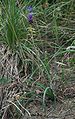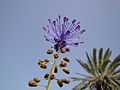 Described by Oleg Polunin as "a striking plant", it has a tuft of bright blue to violet-blue sterile flowers above brownish-green fertile flowers, which open from dark blue buds,[4] reminiscent of a menorah candelabrum. This tuft gives rise to the name "tassel hyacinth".[7] The flower stem is 20–60 cm tall; individual flowers are borne on long stalks, purple in the case of the sterile upper flowers. Mature fertile flowers are 5–10 mm long with stalks of this length or more and are bell-shaped, opening at the mouth, where there are paler lobes. The linear leaves are 5–15 mm wide, with a central channel.[4][7]