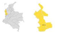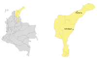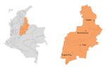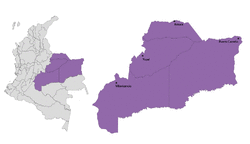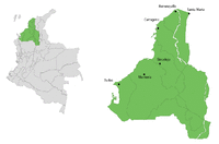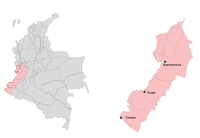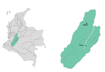 Guabina is a rhythm from the Andean Mountains in Colombia. The features of this music are based on dances and lifestyles of the people from Antioquia, Santander, Boyacá, Tolima, and, Huila.[3] The Guabina rhythm includes dancers, but it may be played without them. There is a version of the Guabina that is played faster and is called Torbellino.[4] Another type of Guabina, known as guabina-torbellino, is a mixture of the instrumental torbellino and the sung guabina, particularly in its a cappella format. Guabina is most popular in rural communities.[5]