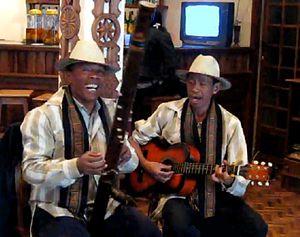 The highly diverse and distinctive music of Madagascar has been shaped by the musical traditions of Southeast Asia, Africa, Arabia, England, France and the United States over tine as indigenous people, immigrants, and colonists have made the island their home.[1] Traditional instruments reflect these widespread origins: the mandoliny and kabosy owe their existence to the introduction of the guitar by early Arab or European seafarers, the ubiquitous djembe originated in mainland Africa and the valiha—the bamboo tube zither considered the national instrument of Madagascar—directly evolved from an earlier form of zither carried with the first Austronesian settlers on their outrigger canoes.[2]