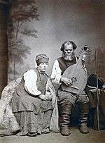 2. Solo singing with instrumental accompaniment by professional itinerant singers known as kobzari or lirnyky. The highest form of development of this style of singing can be seen in the lyric historical folk epics known as dumy sung to the accompaniment of the bandura, kobza or lira (lirnyk). Dumy were sung primarily in the dorian mode