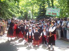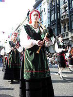 Navarre and La Rioja are small northern regions with diverse cultural elements. Northern Navarre is Basque in language, while the Southern section shares more Aragonese features. The jota is also known in both Navarre and La Rioja. Both regions have rich dance and dulzaina (shawm) traditions. Txistu (tabor pipe) and dulzaina ensembles are very popular in the public celebrations of Navarre.