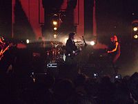 Indie or independent rock (often described as alternative rock in the U.S.), was a scene that emerged from post-punk and new wave eschewing the major record labels for control of their own music and relying on local scenes or national sub-cultures to provide an audience. Having enjoyed some success a number of indie acts were able to move into the mainstream, including early indie bands Aztec Camera, Orange Juice and The Smiths, followed by The Housemartins and James. The C86 cassette, released in 1986 by NME and featuring such bands as The Wedding Present, Primal Scream, The Pastels, and the Soup Dragons, was a major influence on the development of indie pop and the British indie scene as a whole.[10][11] Other forms of alternative rock developed in the UK during the 1980s. The Jesus and Mary Chain wrapped their pop melodies in walls of guitar noise, while New Order emerged from the demise of post-punk band Joy Division and experimented with techno and house music, forging the alternative dance style. The Mary Chain, along with Dinosaur Jr and the dream pop of Cocteau Twins, were the influences for the shoegazing movement of the late 1980s. Named for the bandmembers' tendency to stare at their feet onstage, shoegazing acts like My Bloody Valentine, Slowdive, Ride, and Lush created an overwhelmingly loud "wash of sound" that obscured vocals and melodies with long, droning riffs, distortion, and feedback.[12] Shoegazing bands dominated the British music press at the end of the decade along with the drug-fuelled Madchester scene. Based around The Haçienda, a nightclub in Manchester owned by New Order and Factory Records, Madchester bands such as The Stone Roses and the Happy Mondays mixed acid house dance rhythms with melodic guitar pop.[13]