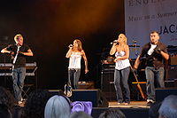 Folk punk or rogue folk is a fusion of folk music and punk rock, or occasionally other genres, which was pioneered by the London-based Irish band The Pogues in the 1980s. It achieved some mainstream success in the 1980s and, particularly as the subgenre of Celtic punk, has been widely adopted in areas of the Celtic diaspora in North America and Australia and by many bands in continental central and eastern Europe. Unlike earlier Celtic rock and electric folk groups, folk punk groups tend to include relatively little traditional music in their repertoire, but instead usually performed their own compositions, often following the form of punk rock, using additional folk instrumentation, including, mandolin, accordion, banjo and particularly violin.[18] Other bands adopted some traditional forms of music, including sea shanties and eastern European gypsy music. Among the most successful performers were The Levellers,[18] and singer-songwriter Billy Bragg, who enjoyed a series of hits in the 1980s.[19]