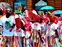 The Virgin Islander cariso tradition is extinct in a true folk context, but remains an important symbol of Crucian culture, and is performed by folkloric ensembles for educational and holiday events. Carisos were still performed as late as the 1990s by several elderly singers, most famously Ethel McIntosh and Leona Watson. Though similar in some ways to quelbe, cariso is more African in its melodic style, frequent sustained syllables and traditional performance context, namely women singing in groups in call-and-response. Carisos, like quelbe, commemorate historical events, and spread news and opinions about important issues.[1] One particularly famous cariso dates to 1848, and documents the emancipation of the slaves; the first segment is the refrain, sung by a chorus, which is followed by a verse performed by a soloist singer: