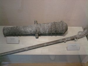 Matchlock firearms were used in India by 1500,[25] in Đại Việt by 1516,[26] and in Southeast Asia by 1540.[27] According to a Burmese source from the late 15th century, King Meng Khoum II would not dare attack the besieged town of Prome due to the defenders' use of cannon and small arms that were described as muskets, although these were probably early matchlock arquebuses or wall guns.[28]
