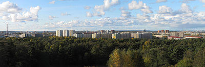 Mustamäe (Estonian for Black Hill) is one of the 8 administrative districts (Estonian: linnaosa) of Tallinn, the capital of Estonia. The smallest by area (it covers only 8.1 km²), it is at the same time the second largest district by population with 66,305 inhabitants (As of 1 November 2014).[2] It is located 5 km from the centre of Tallinn and is bordered by districts Haabersti, Nõmme, and Kristiine. Local housing is mostly represented by 5–9 storeys high panel blocks of flats, built in the 1960–1970s.