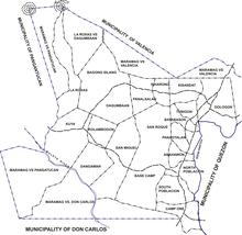 The municipal boundaries between Maramag, Pangantucan and Kibawe were established in 1935 by the then deputy Governor Cenon Paulican. Then, Maramag, with the organization of the former barangays Don Carlos and Quezon into regular municipalities, was reduced to its present area of about 58,198.98 hectares. As reported too, in the late sixties, a Memorandum of Agreement between Maramag and Valencia, Bukidnon was forged as to their common boundaries. Purportedly, the Lumbo Creek, as it flows to the Pulangi River defines the demarcation between the two municipalities.