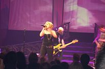 The show's set list was dominated by My December and Breakaway material, with only "Miss Independent" and "Beautiful Disaster" appearing from her first album Thankful and the only indicator of her American Idol heritage her introduction to the Idol Gives Back showstopper "Up to the Mountain".[22][23] Clarkson's concert audience in the U.S. was sometimes composed of high school and younger college age people, predominantly female, and preteen girls accompanied by one or both parents, but also sometimes connected with her radio audience, which includes widespread play on adult contemporary stations.[24] The music presented in the show was more conventionally rock-oriented than her concert audience profile might indicate. Clarkson's between-songs stage patter typically made only a few allusions to her career adventures with the My December album.[24] At the start of the tour, she introduced My December material carefully. Near the close of shows, she thanked the audience for giving this chance to her to perform her songs, saying that all the other facets of the music industry paled in importance. She gave more extensive introductions for "Hole" and "Up to the Mountain",[24] which she said did not fit her normal sound.