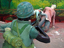 The Mỹ Lai Massacre (Vietnamese: thảm sát Mỹ Lai, [tʰâːm ʂǎːt mǐˀ lāːj]; /ˌmiːˈlaɪ/, /ˌmiːˈleɪ/, or /ˌmaɪˈlaɪ/)[1] was the Vietnam War mass killing of between 347 and 504 unarmed civilians in South Vietnam on March 16, 1968. It was committed by U.S. Army soldiers from Company C, 1st Battalion, 20th Infantry Regiment, 11th Brigade, 23rd (Americal) Infantry Division. Victims included men, women, children, and infants. Some of the women were gang-raped and their bodies mutilated.[2][3] Twenty-six soldiers were charged with criminal offenses, but only Lieutenant William Calley Jr., a platoon leader in C Company, was convicted. Found guilty of killing 22 villagers, he was originally given a life sentence, but served only three and a half years under house arrest.