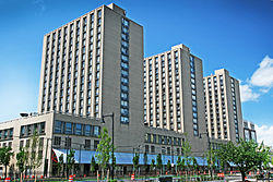 The Boston University housing system is the 2nd-largest of any private university in the United States, with 76% of the undergraduate population living on campus.[2] On-campus housing at BU is an unusually diverse melange, ranging from individual 19th-century brownstone town houses and apartment buildings acquired by the school to large-scale high-rises built in the 60s and 2000s.