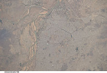 N'Djamena (/əndʒɑːˈmeɪnɑː/;[3][4] French: N'Djaména, pronounced [n(ə)dʒa.me.na]; Arabic: انجمينا Injamīnā) is the capital and largest city of Chad. A port on the Chari River, near the confluence with the Logone River, it directly faces the Cameroonian town of Kousséri, to which the city is connected by a bridge. It is also a special statute region, divided into 10 districts or arrondissements. It is a regional market for livestock, salt, dates, and grains. Meat, fish and cotton processing are the chief industries, and the city continues to serve as the center of economic activity in Chad.