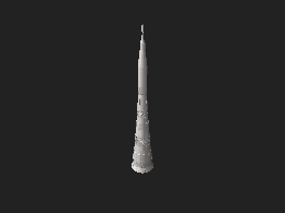 The N1 was a very large rocket, standing 105 meters (344 ft) tall with its L3 payload. The N1-L3 consisted of five stages in total: the first three (N1) for insertion into a low Earth parking orbit, and another two (L3) for translunar injection and lunar orbit insertion. Fully loaded and fueled, the N1-L3 weighed 2,750 tonnes (6,060,000 lb). The lower three stages were shaped to produce a single frustum 17 meters (56 feet) wide at the base,[23] while the L3 section was mostly cylindrical, carried inside a shroud an estimated 3.5 meters (11 feet) wide.[24] The conical shaping of the lower stages was due to the arrangement of the tanks within, a smaller spherical kerosene tank on top of the larger liquid oxygen tank below.